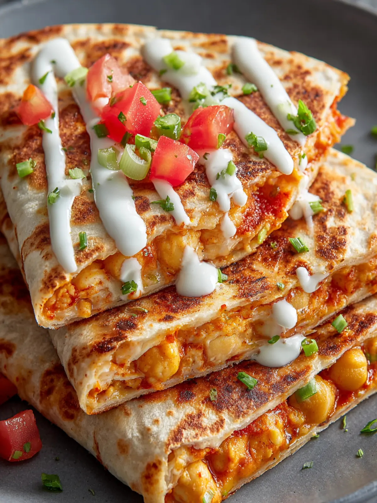 With the spicy undertone from buffalo sauce combined with the creaminess of cheese, every bite of these quesadillas is a flavor explosion. The chickpeas bring a hearty protein punch, making this dish not just tasty but also filling and nutritious.