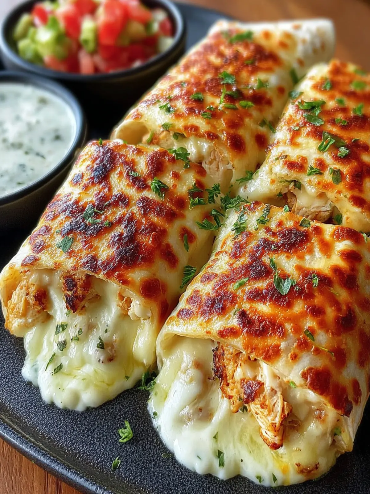 Pair your burritos with a vibrant salsa for added zest. I recommend a fresh pico de gallo made from diced tomatoes, onions, cilantro, and a squeeze of lime. This fresh, tangy salsa cuts through the richness of the cheese and chicken, making each bite a delight.