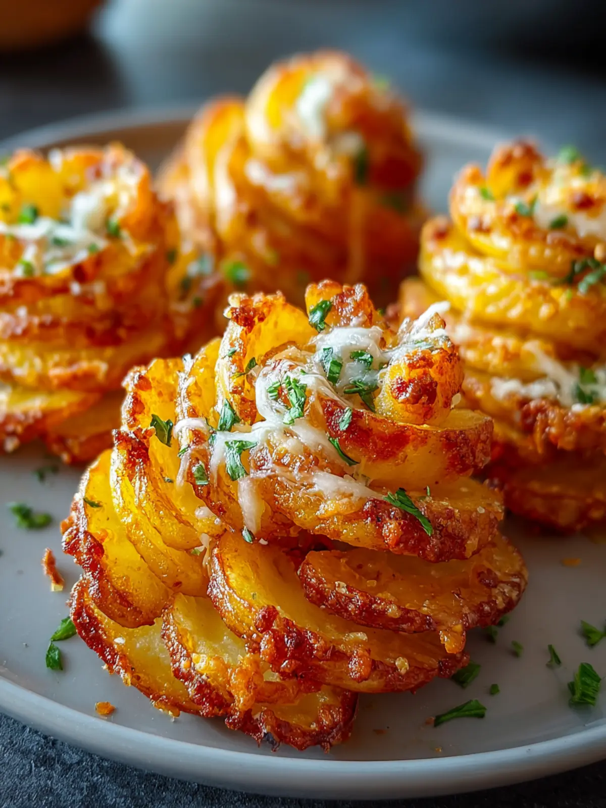 Deliciously crispy spiralized potatoes seasoned to perfection and topped with Parmesan cheese.