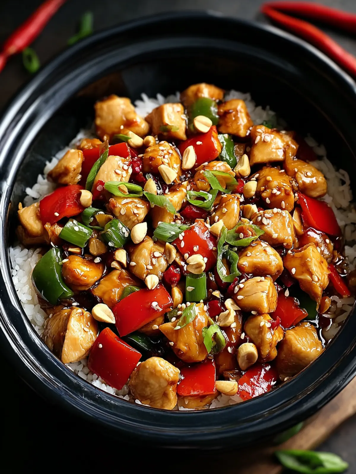 Incorporating fresh bell peppers and scallions adds vibrancy and a pop of color to your Crockpot Kung Pao Chicken. Not only do they enhance the dish visually, they also provide complementary flavors that brighten up every bite.