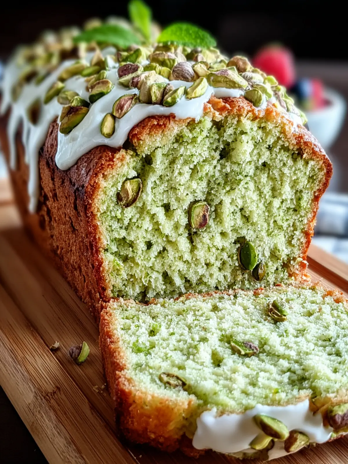With its rich, buttery texture and subtle nuttiness from the pistachios, this bread brings joy to every bite. The creamy pistachio pudding mixed into the batter elevates it further, creating a moist crumb that’s simply delightful. Each slice is melt-in-your-mouth delicious, making it an ideal treat for brunch or a cozy afternoon snack.