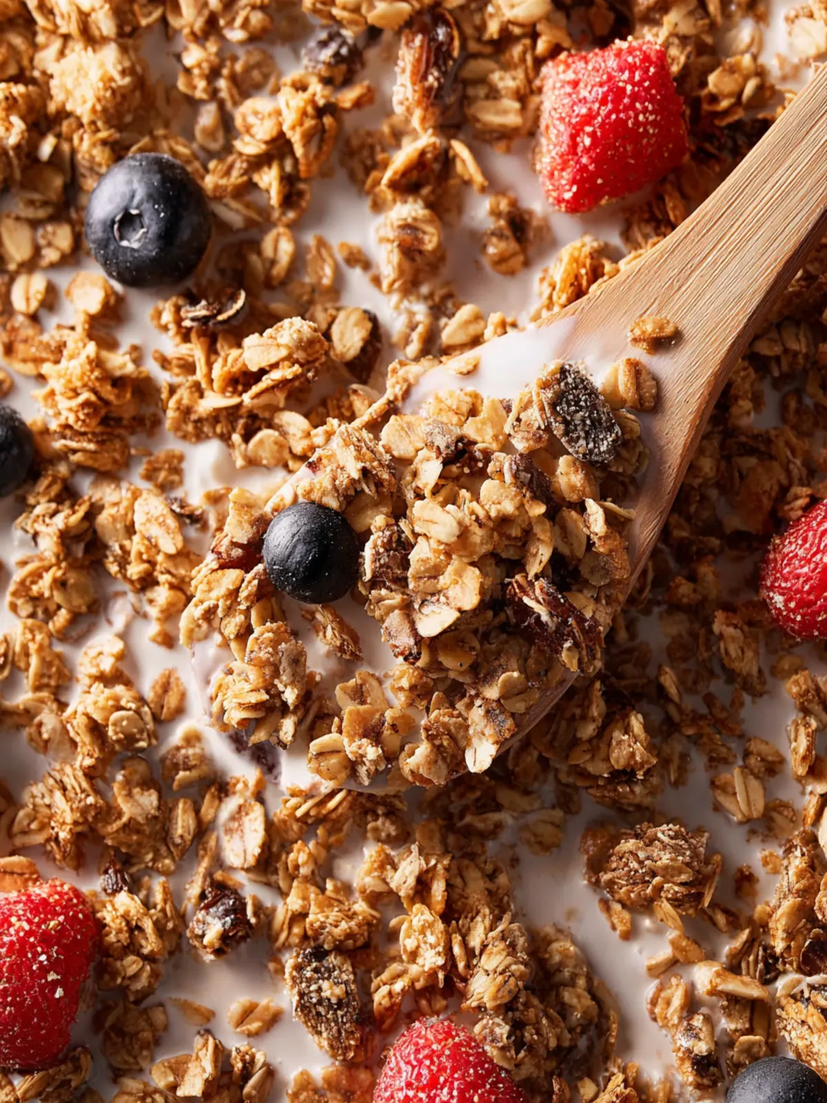 Keep an eye on your granola while baking. Over-baking can lead to a burnt flavor. Stirring the mixture every 10 minutes ensures it cooks evenly and prevents any parts from browning too quickly. A golden hue is your target.