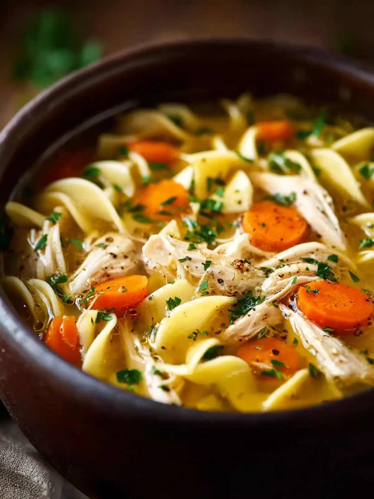 A comforting and hearty chicken noodle soup, perfect for any day of the week.