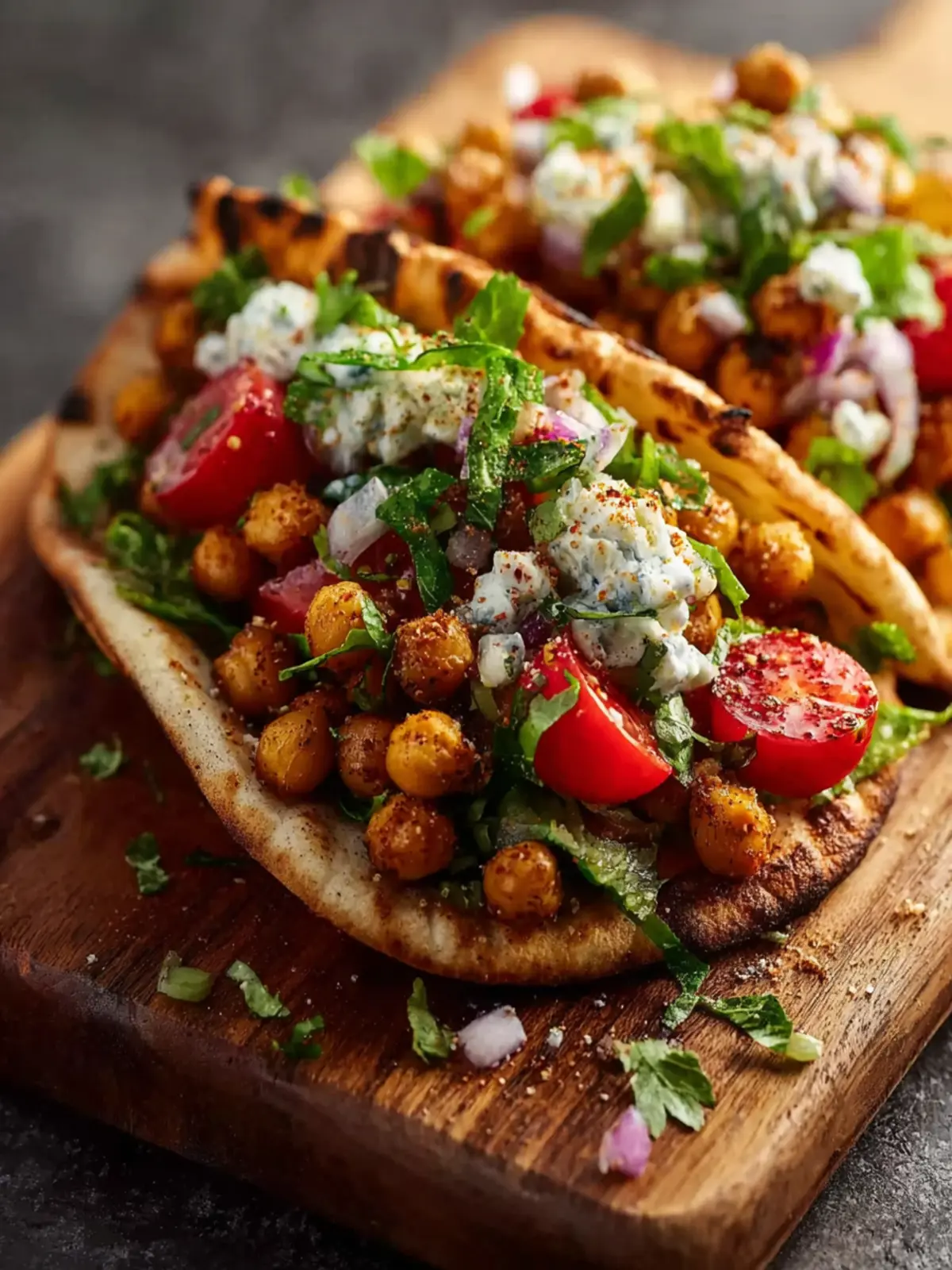 - Layer your tacos thoughtfully! Start with a base of chickpeas, then pile on fresh veggies like diced tomatoes and cucumber.