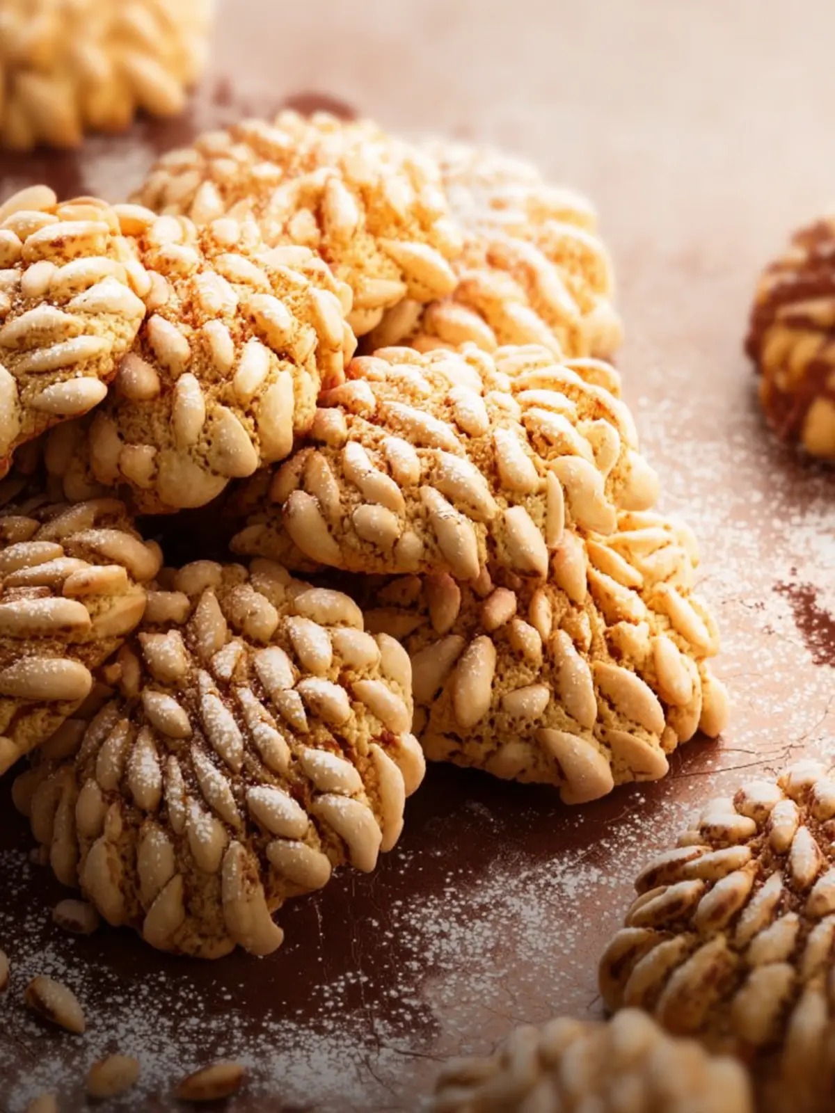 Delicious cookies made with almond paste and coated in pine nuts.