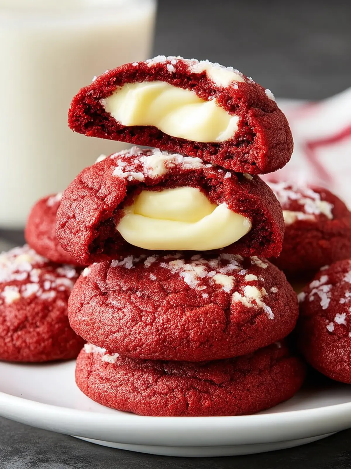 Delicious red velvet cookies filled with a creamy cheese filling, perfect for any occasion.