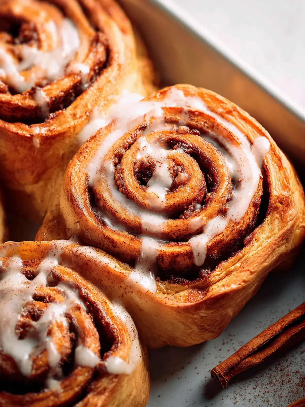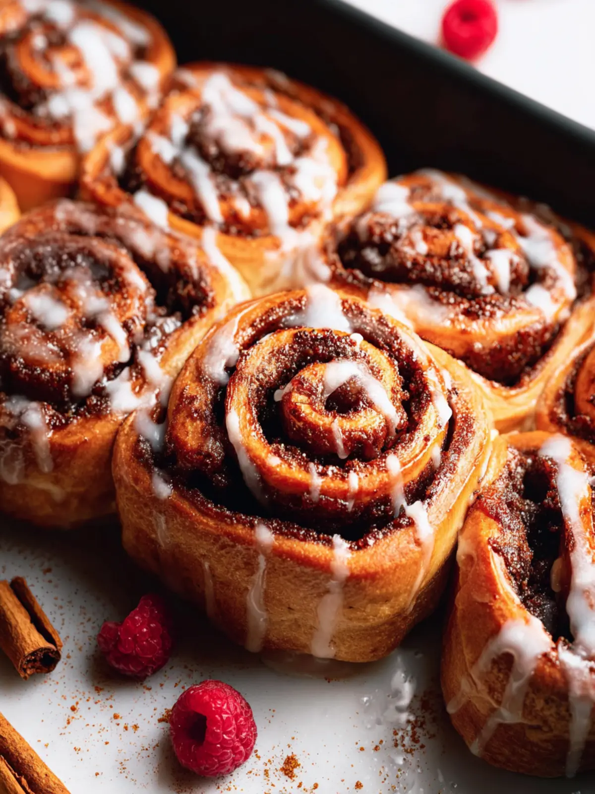 Delicious homemade cinnamon rolls with a sweet glaze, perfect for breakfast or dessert.